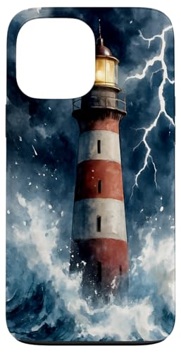 Phare dans la tempête avec Flash Paysage Marin Dramatique Coque pour iPhone 13 Pro Max