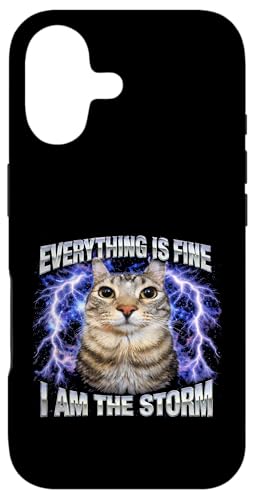 Cat Meme Tout va Bien Je suis la tempête Coque pour iPhone 16