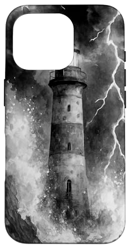 Phare dans la tempête avec Flash Paysage Marin Dramatique Coque pour iPhone 16 Pro