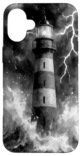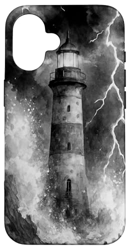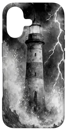 Phare dans la tempête avec Flash Paysage Marin Dramatique Coque pour iPhone 16