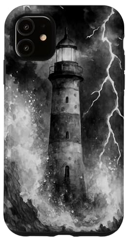 Phare dans la tempête avec Flash Paysage Marin Dramatique Coque pour iPhone 11