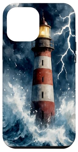 Phare dans la tempête avec Flash Paysage Marin Dramatique Coque pour iPhone 17 Pro Max