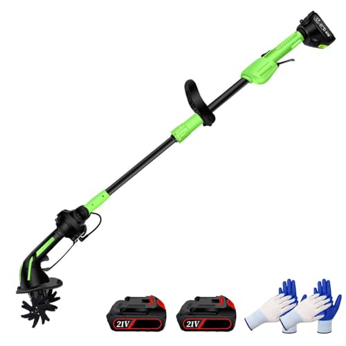 Rotavator De Jardin électrique Mini Motoculteur sans Fil avec 2 * Batteries 21v Et Manche Long Profondeur De Labour 10cm Largeur De Travail 10cm Rotavator électrique pour Jardinage Pelouse with Pole