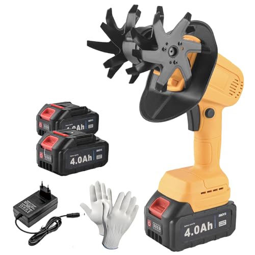 Fockety Motoculteur sans Fil, Largeur et Profondeur de Labour de 3,9 Pouces, motoculteur électrique de 235 TR/Min avec Batterie 2x1500 mAh pour Le Travail du Sol de la pelouse (Prise UE)