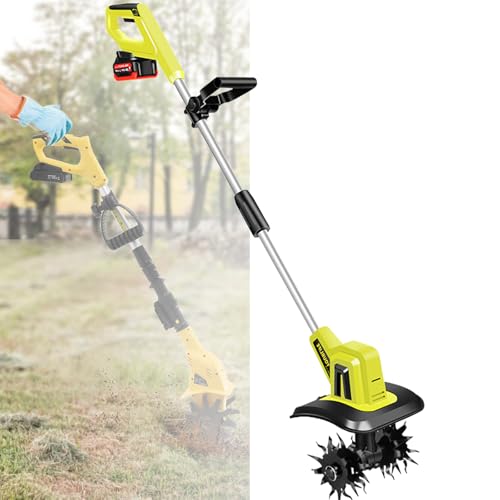 Motoculteur de Jardin sans Batterie, Mini cultivateur sans Fil avec Batterie 21V, houe électrique avec Tige Extensible, Largeur et Profondeur de Travail 10 cm, pour Labour et désherbage (1 Batterie)