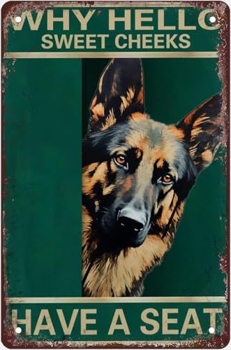 Plaque décorative rétro en métal « Shepherd Why Hello Sweet Cheeks Have A Seat » (20 x 30 cm) - Décoration murale pour la maison, le salon, la cuisine, la salle à manger, la chambre ou une maison de