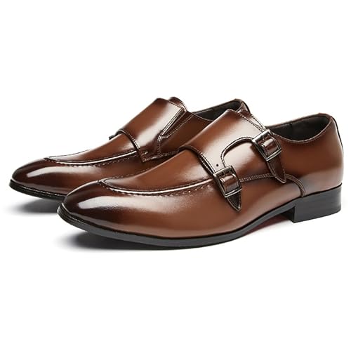 QAXZESA Chaussures habillées pour Hommes Brillant Double Sangle de Moine Moderne vélo Orteil Mariage Affaires décontracté Professionnel sans Lacet Mocassins,Jaune,42