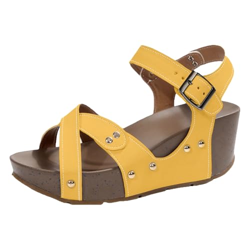 Générique sandales femme été confortable Chaussures compensées semelle épaisse pour femmes, sandales d'extérieur la et décontractées avec bouche de poisson creuse Chaussure De Sans Lacet (Yellow, 38)