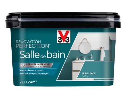 V33 Peinture de rénovation salle de bain, Rénovation perfection Bleu lagon satin 2L