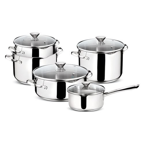 Lagostina Smart Batterie de Cuisine pour Induction, Gaz et Four en Acier Inoxydable 18/10, 9 Pièces, Fond Lagoseal Plus Triple Couche, avec 3 Faitouts , 1 Marmite, 1 Casserole et 4 Couvercles