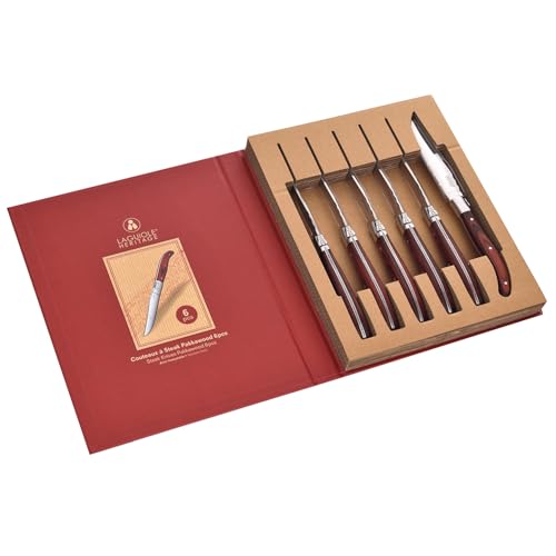 Set de couteaux à steak Laguiole Heritage 6 pièces - Couteau à steak en acier inoxydable avec manche en bois noble - Couverts Laguiole faits main dans un coffret cadeau - Couteau à viande premium pour