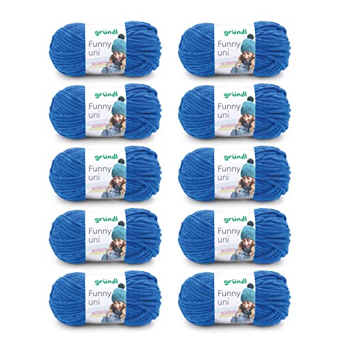 Gründl Laine Funny uni - laine chenille douce pour le crochet – moelleuse et respectueuse de la peau - 100% polyester – 10 pelotes 100 g / 120 m – taille d’aiguille 5-6 -bleu royal