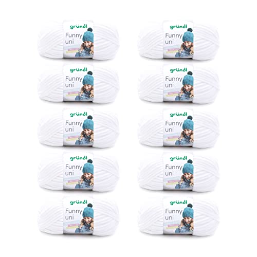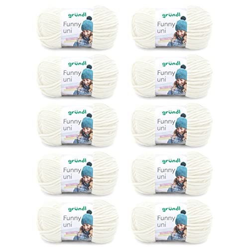 Gründl Laine Funny uni - laine chenille douce pour le crochet – moelleuse et respectueuse de la peau - 100% polyester – 10 pelotes 100 g / 120 m – taille d’aiguille 5-6 -Blanc