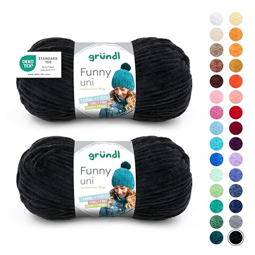 Gründl Laine Funny uni - laine chenille douce pour le crochet – moelleuse et respectueuse de la peau - 100% polyester – 2 pelotes 100 g / 120 m – taille d’aiguille 5-6 -Noir
