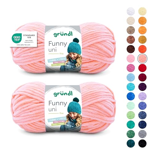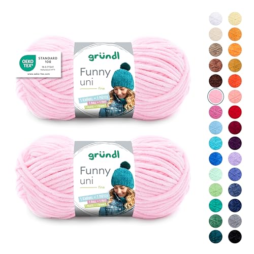 Gründl Laine Funny uni - laine chenille douce pour le crochet – moelleuse et respectueuse de la peau - 100% polyester – 2 pelotes 100 g / 120 m – taille d’aiguille 5-6 -rose pastel