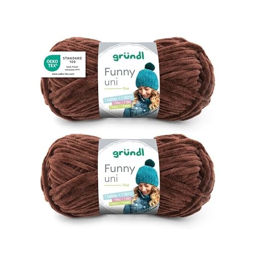 Gründl Laine Funny uni - laine chenille douce pour le crochet – moelleuse et respectueuse de la peau - 100% polyester – 2 pelotes 100 g / 120 m – taille d’aiguille 5-6 -Brun