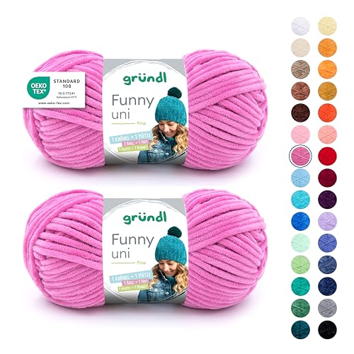 Gründl Laine Funny uni - laine chenille douce pour le crochet – moelleuse et respectueuse de la peau - 100% polyester – 2 pelotes 100 g / 120 m – taille d’aiguille 5-6 -fuchsia