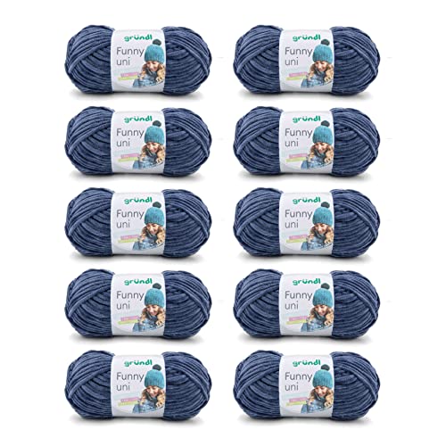 Gründl Laine Funny uni - laine chenille douce pour le crochet – moelleuse et respectueuse de la peau - 100% polyester – 10 pelotes 100 g / 120 m – taille d’aiguille 5-6 -jeans