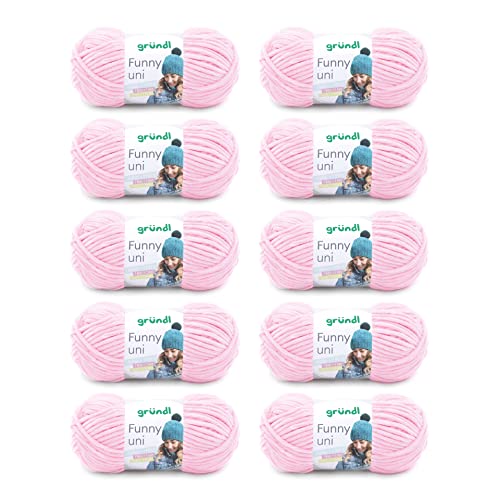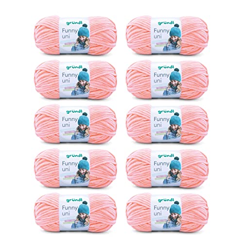 Gründl Laine Funny uni - laine chenille douce pour le crochet – moelleuse et respectueuse de la peau - 100% polyester – 10 pelotes 100 g / 120 m – taille d’aiguille 5-6 -rose pastel