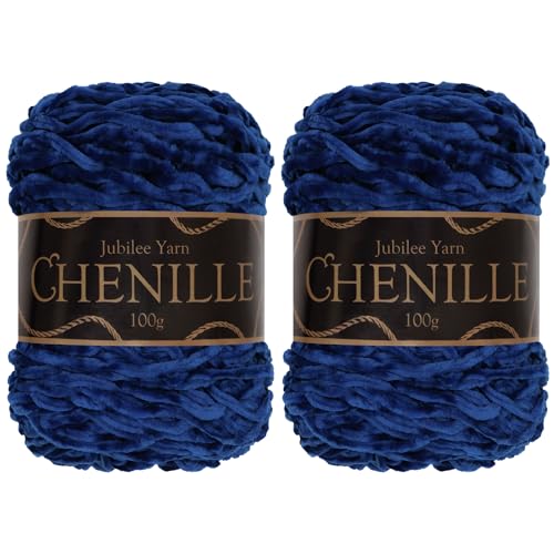 Utopia Crafts Cuddle Laine Chenille, Fil Chenille, Pelote de Laine à Tricoter Super Épaisse de 100 g (60 m), Moelleuse, Douce, Facile à Utiliser, Idéale pour Crochet et Tricot, Bleu Marine (Lot de 2)