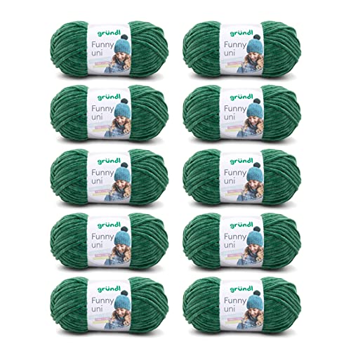 Gründl Laine Funny uni - laine chenille douce pour le crochet – moelleuse et respectueuse de la peau - 100% polyester – 10 pelotes 100 g / 120 m – taille d’aiguille 5-6 -émeraude