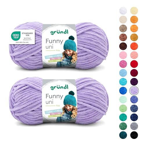 Gründl Laine Funny uni - laine chenille douce pour le crochet – moelleuse et respectueuse de la peau - 100% polyester – 2 pelotes 100 g / 120 m – taille d’aiguille 5-6 -lavande