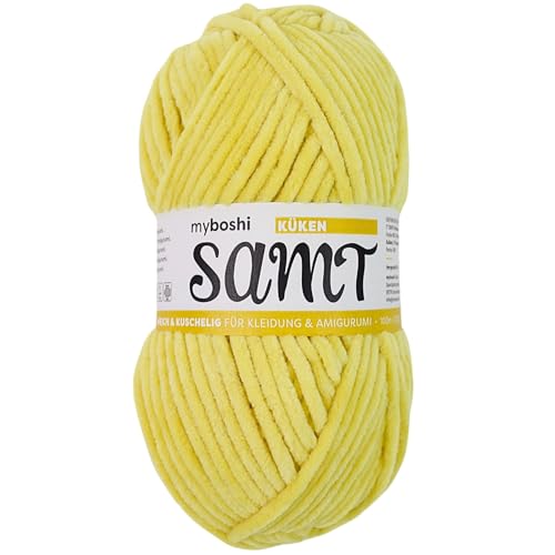 myboshi Laine velours pour crochet et tricot - Laine chenille douce en pelote XXL - Parfaite pour l'amigurumi et les coussins - 100% polyester moelleux - 100 g - 100 m - Jaune (poussin) - 1 pelote