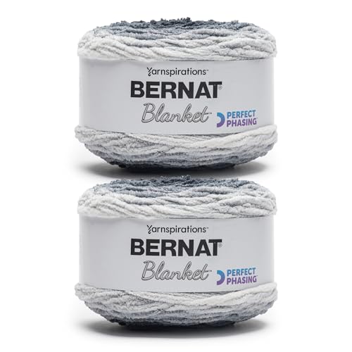 Bernat Blanket Perfect Phasing Lot de 2 pelotes de laine chenille épaisse - 299,37 g - 100% polyester - #6 super volumineux - 200 m - Pour tricot, crochet, artisanat et amigurumi - Noir profond