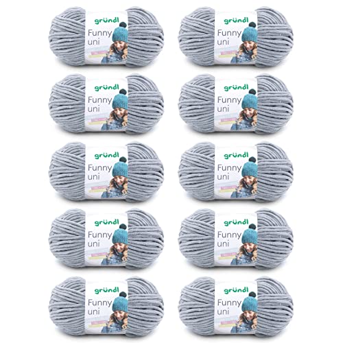 Gründl Laine Funny uni - laine chenille douce pour le crochet – moelleuse et respectueuse de la peau - 100% polyester – 10 pelotes 100 g / 120 m – taille d’aiguille 5-6 -gris clair