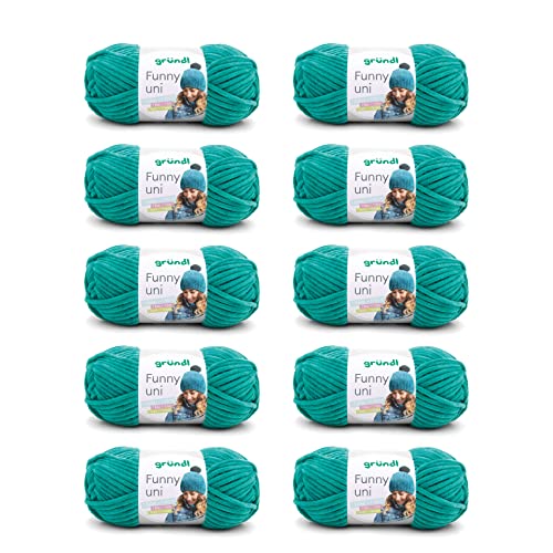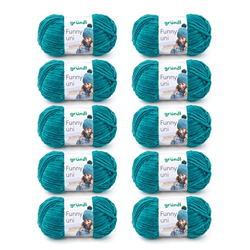Gründl Laine Funny uni - Laine Chenille Douce pour Le Crochet – Moelleuse et respectueuse de la Peau - 100% Polyester – 10 pelotes 100 g / 120 m – Taille d’Aiguille 5-6 - petrol