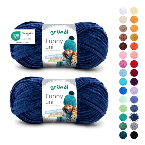 Gründl Laine Funny uni - laine chenille douce pour le crochet – moelleuse et respectueuse de la peau - 100% polyester – 2 pelotes 100 g / 120 m – taille d’aiguille 5-6 -Marine