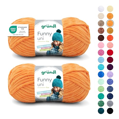 Gründl Laine Funny uni - laine chenille douce pour le crochet – moelleuse et respectueuse de la peau - 100% polyester – 2 pelotes 100 g / 120 m – taille d’aiguille 5-6 -abricot
