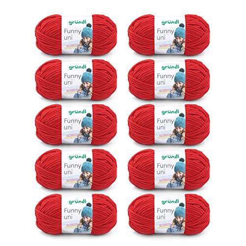 Gründl Laine Funny uni - laine chenille douce pour le crochet – moelleuse et respectueuse de la peau - 100% polyester – 10 pelotes 100 g / 120 m – taille d’aiguille 5-6 -cerise