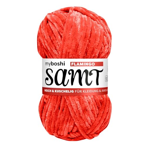 myboshi Laine velours pour crochet et tricot - Pelote de laine chenille douce en pelote XXL - Parfaite pour l'amigurumi et les coussins - 100% polyester moelleux - 100 g - 100 m - Orange (flamant