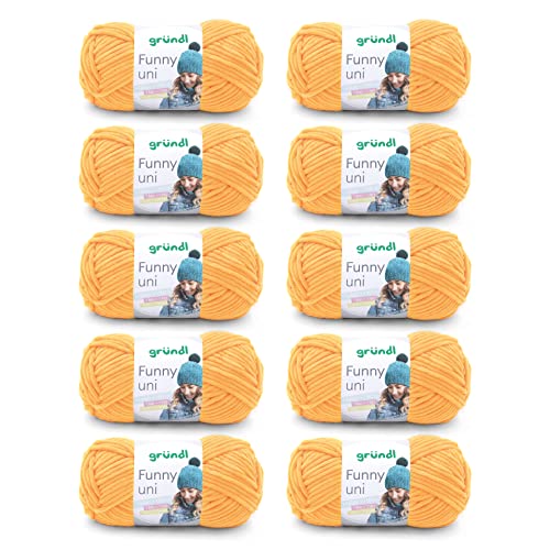 Gründl Laine Funny uni - laine chenille douce pour le crochet – moelleuse et respectueuse de la peau - 100% polyester – 10 pelotes 100 g / 120 m – taille d’aiguille 5-6 -Jaune