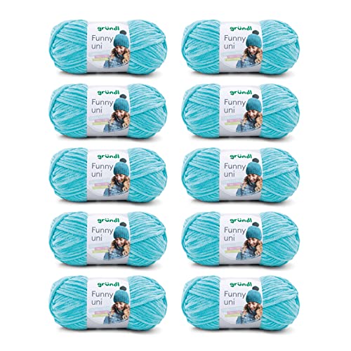 Gründl Laine Funny uni - laine chenille douce pour le crochet – moelleuse et respectueuse de la peau - 100% polyester – 10 pelotes 100 g / 120 m – taille d’aiguille 5-6 -Turquoise