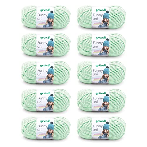 Gründl Laine Funny uni - laine chenille douce pour le crochet – moelleuse et respectueuse de la peau - 100% polyester – 10 pelotes 100 g / 120 m – taille d’aiguille 5-6 -vert pastel