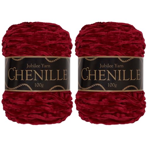 JubileeYarn Lot de 2 pelotes de laine chenille peignée 100 g/gâteau Rouge écarlate