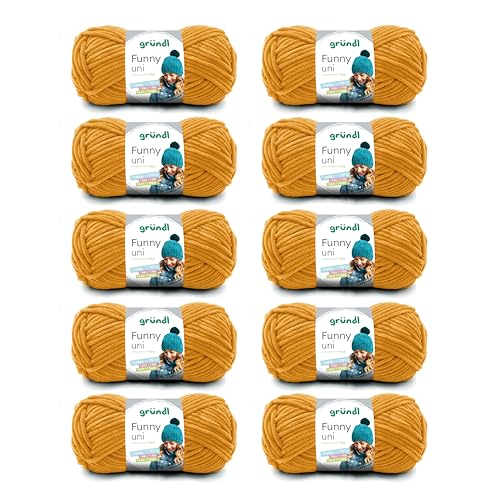 Gründl Laine Funny uni - laine chenille douce pour le crochet – moelleuse et respectueuse de la peau - 100% polyester – 10 pelotes 100 g / 120 m – taille d’aiguille 5-6 -Moutarde