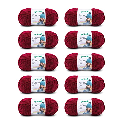 Gründl Laine Funny uni - laine chenille douce pour le crochet – moelleuse et respectueuse de la peau - 100% polyester – 10 pelotes 100 g / 120 m – taille d’aiguille 5-6 -Bordeaux