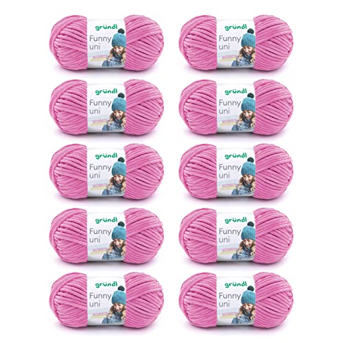 Gründl Laine Funny uni - laine chenille douce pour le crochet – moelleuse et respectueuse de la peau - 100% polyester – 10 pelotes 100 g / 120 m – taille d’aiguille 5-6 -fuchsia