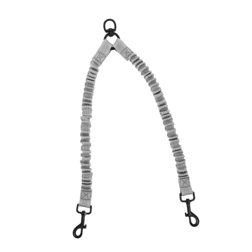 EXCELLENT ELITE SPANKER Laisse Militaire Tactique pour Chien Clips de Crochets en Aluminium Laisse pour Chien à élastique Corde élastique avec 2 poignées de contrôle(GRY)