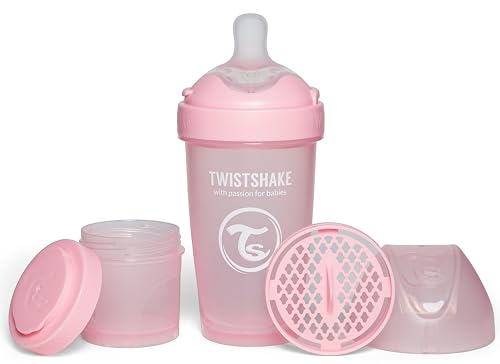 Twistshake Pro Double Biberon Anti-Colique avec Récipient à Lait en Poudre - 260 ml | Mamelon en Silicone à Débit Moyen | Biberon de Lait pour Bébé sans BPA | Convient aux Bébés de 2m+ | Rose
