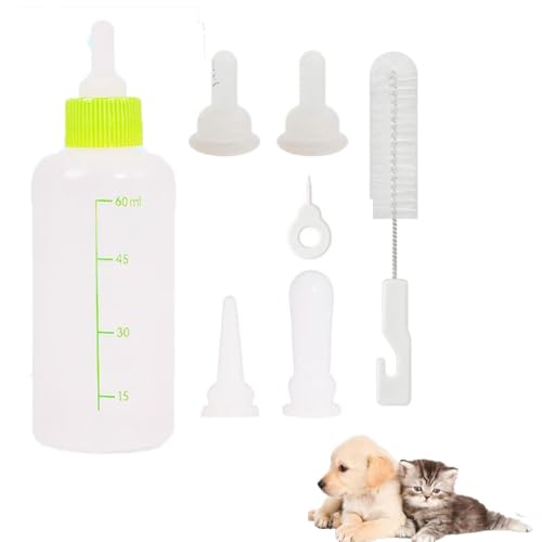Armastuse Biberon Chaton Chiot,biberon en Silicone, pour bébé, Nouveau-né, Animal de Compagnie, Petits Chiens, Chiots, Chats, Lait, avec kit de pinceaux à tétons (60 ML