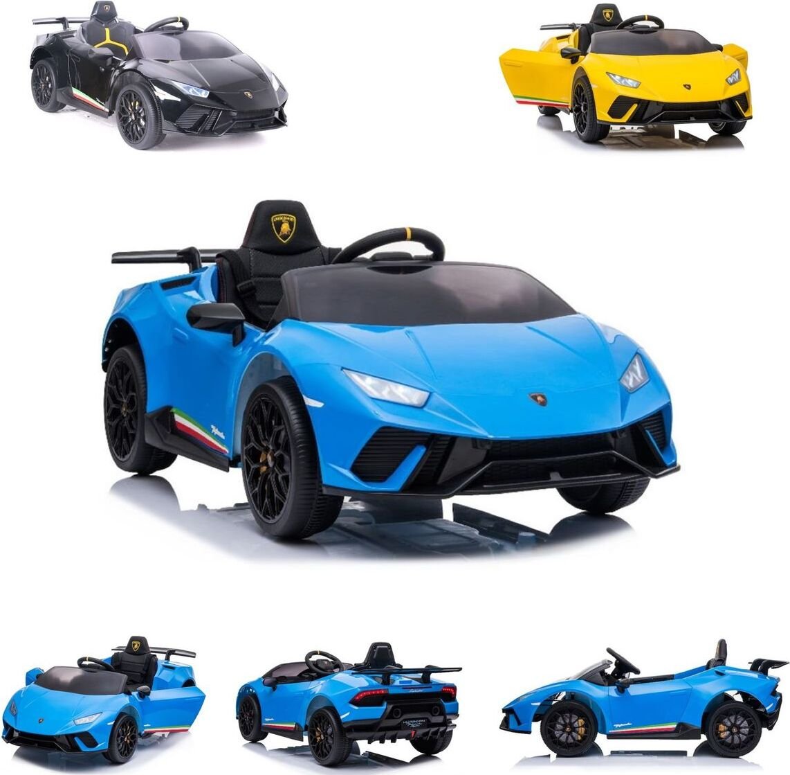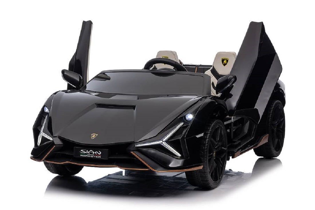 Voiture électrique Lamborghini pour enfants avec télécommande, phares LED, klaxon et musique blanche