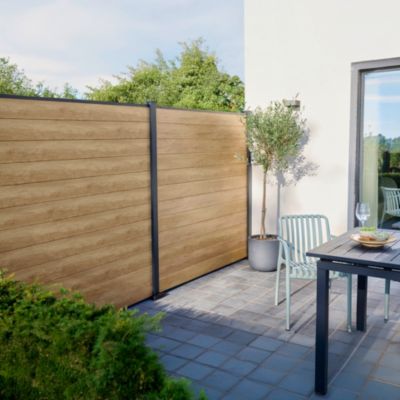 Lame de clôture pour pose emboitée en aluminium décor chêne Neva Klikstrom, L.179,8cm x H.15,7 cm x Ep.2,1 cm