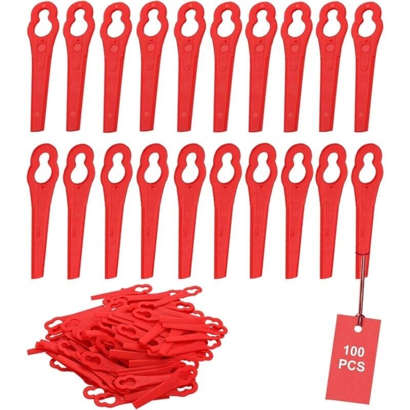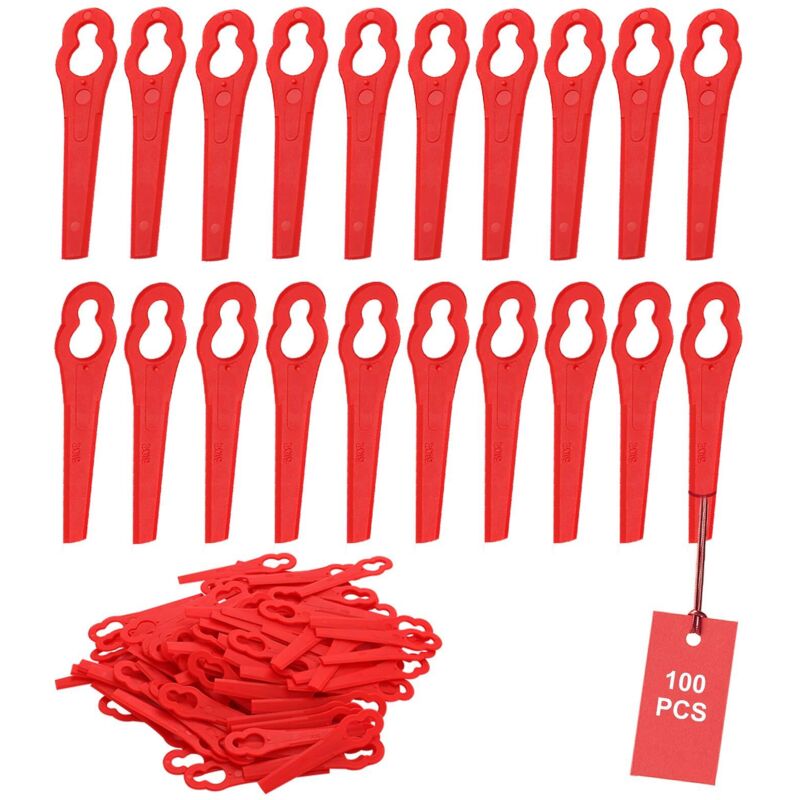 100 Pcs Lames en Plastique de Rechange, Lame Coupe Bordure Tondeuse à Gazon pour Jardin et Pelouse Coupe Bordures (Rouge)