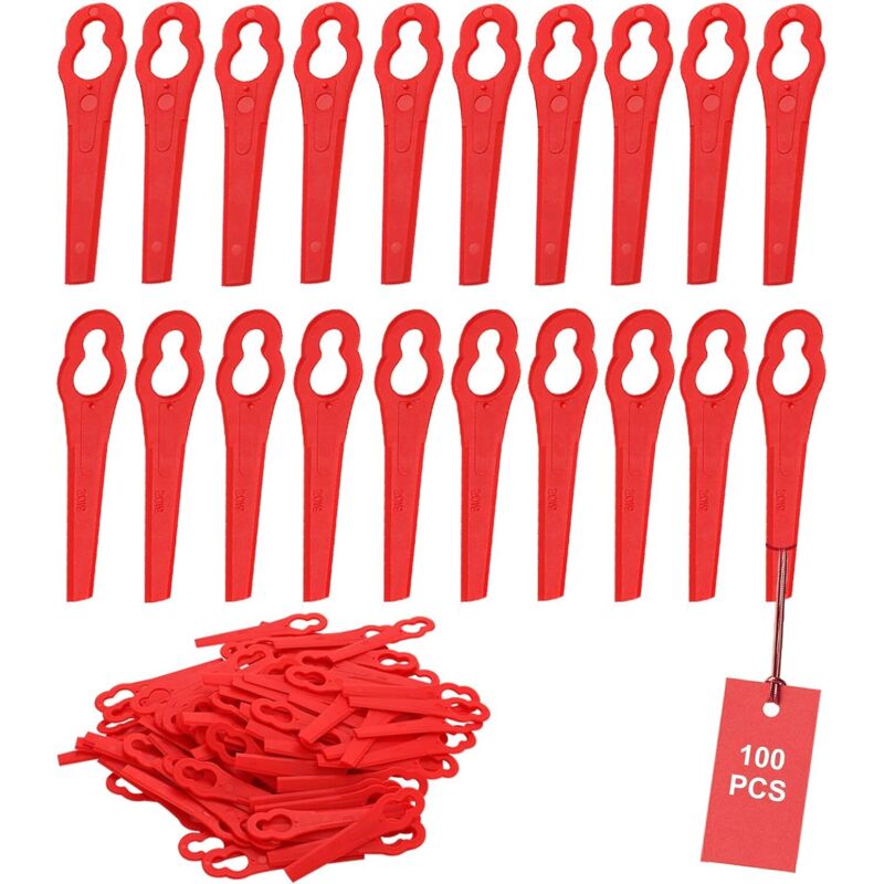 100 Pcs Lames en Plastique de Rechange,Lame Coupe Bordure Tondeuse à Gazon en Plastique Lames pour Jardin et Pelouse Coupe Bordures (Rouge)