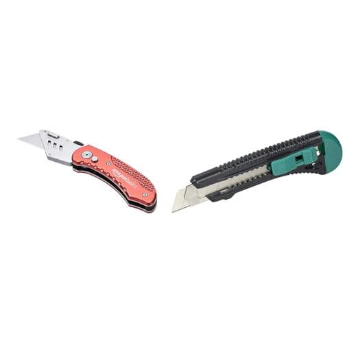 Amazon Basics - Cutter fonctionnel pliable - Corps léger en aluminium & wolfcraft 4146000 - Cutter Lame Sécable - Largeur de Lame 18 mm, Argent