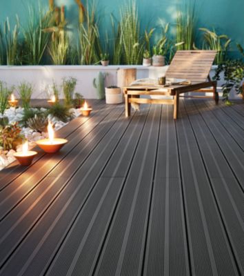 Lame de terrasse composite anthracite Neva Klikstrom L. 220 cm x l. 14,5 cm